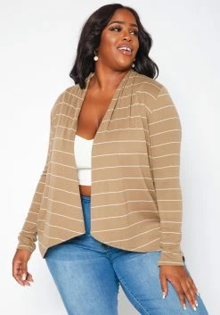 Plus Size Drape Front Open Front Shimmer Cardigan