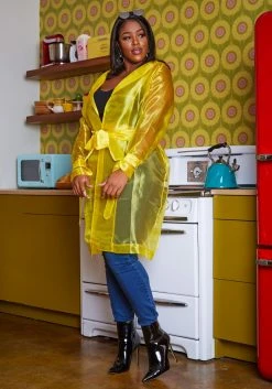Plus Size Sheer Lined Trench Jacket
