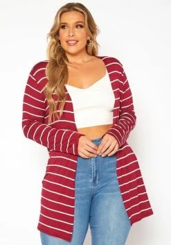 Plus Size Striped Open Front Cardigan