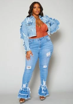 Plus Size Ruffle Trim Denim Jacket
