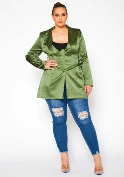Plus Size Satin Blazer & Corset Set