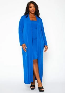 Plus Size Rib Knit Tube Midi Dress & Duster Cardigan Set