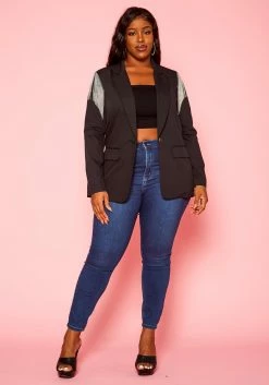 Plus Size Tassel Shoulder Hem Notch Collar Blazer