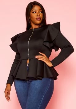 Plus Size Ruffle Shoulder Hem Peplum Jacket