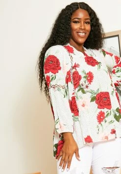 Asoph Plus Size Aztec Print Long Sleeve Top