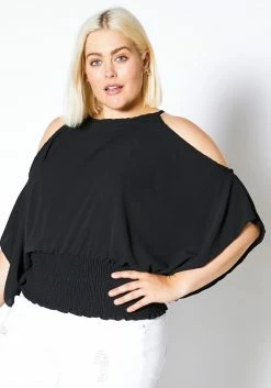 Asop Plus Size Cold Shoulder Womens Ruched Blouse