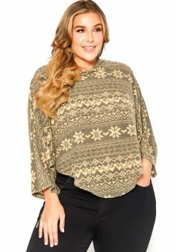 Asoph Plus Size Aztec Print Dolman Sleeve Hooded Sweater
