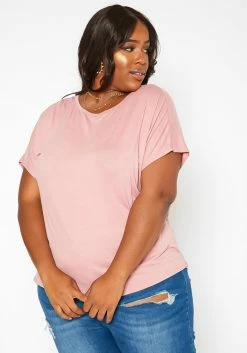 Asoph Plus Size Back Cross Hem Design Tee Shirt
