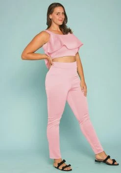 Asoph Plus Size Ruffle Crop Top & Pants Set