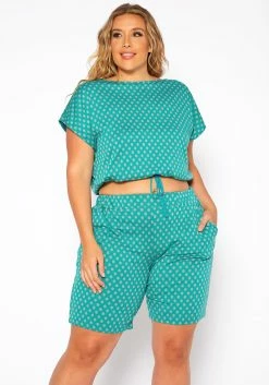 Asoph Plus Size Polka Dot Two Piece Set