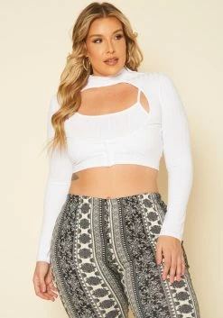 Asoph Plus Size Ribbed Two Piece Crop Top Set