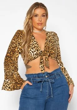 Plus Size Multi Print Crop Top & Flare Pants Set