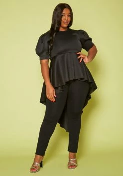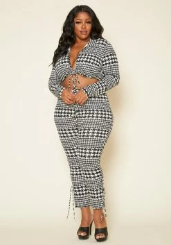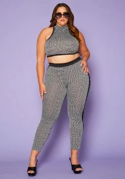 Plus Size Mock Neck Crop Top & Abstract Legging Set