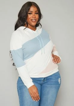Asoph Plus Size Soft Hooded Color Splice Sweater