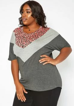 Asoph Plus Size Pink Leopard Chevron Splice Tee Shirt