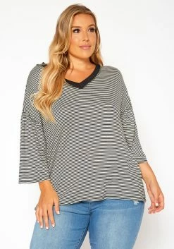 Asoph Plus Size Multi Color Striped High Low Collar Top