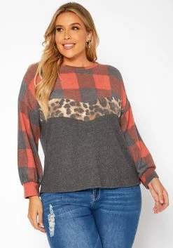 Asoph Plus Size Leopard Splice Knit Sweater