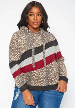 Plus Size Leopard Print Color Block Hooded Sweater