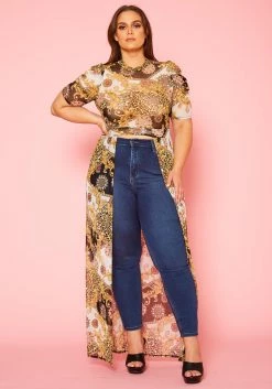 Plus Size Multi Chainlink Pattern Fit & Flare Maxi Dress