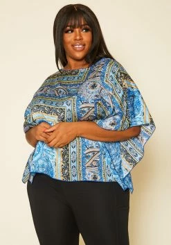 Plus Size Paisley Print Dolman Sleeve Top