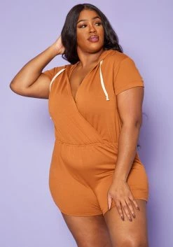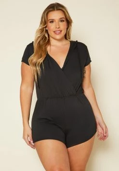 Plus Size Overlap V-Neck Lounge Romper
