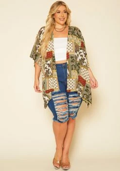 Plus Size Paisley Block Print Duster Cardigan