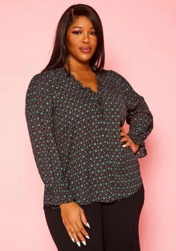 Plus Size Oriental Pattern Blouse