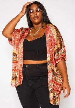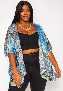 Plus Size Paisley Print Mesh Crop Top & Mesh Skirt Set