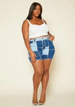 Plus Size Patchwork Mesh Print Asymmetric Top