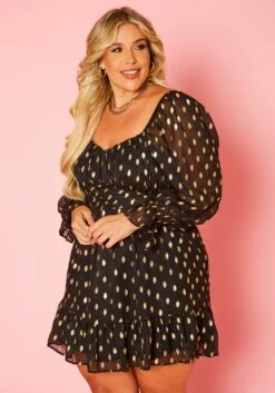 Plus Size Polka Dot Off Shoulder Mini Dress