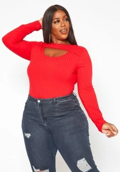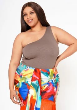 Plus Size Ribbed Knit One Sleeve Bodysuit
