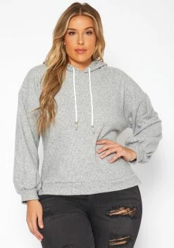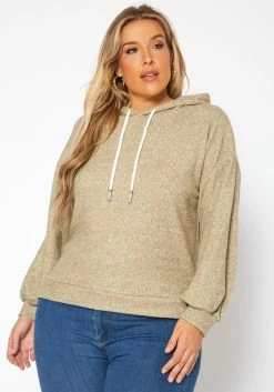 Plus Size Ribbed Knit Hooded Sweater & Skirt Set