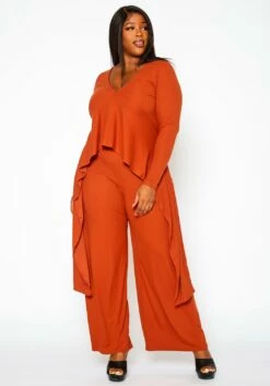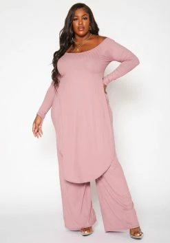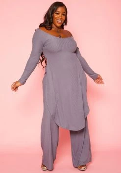Plus Size Ribbed Knit Longline Top & Pants Set