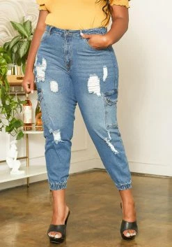 Asoph Plus Size Distressed Denim Cargo Mom Jeans