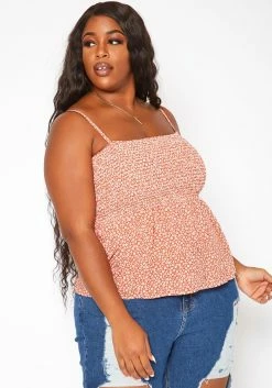 Asoph Plus Size Dainty Floral Print Smocked Cami Top