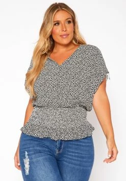 Asoph Plus Size Dainty Leopard Print Flare Top
