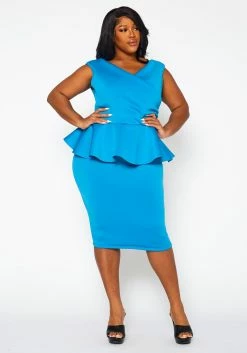 Plus Size Slinky Collar Neck Bodycon Mini Dress