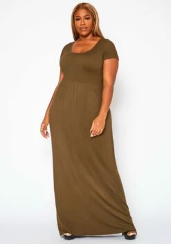 Plus Size Smocked Seamless Fit & Flare Maxi Dress