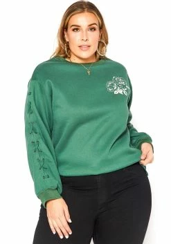 Asoph Plus Size Floral Graphic Ascent Cross Lace Sweater