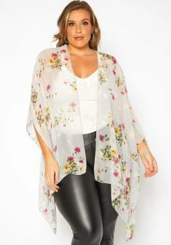 Asoph Plus Size Floral Print Kimono Cardigan