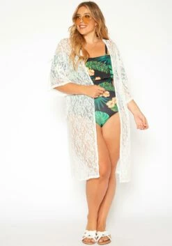 Asoph Plus Size Floral Lace Kimono Cardigan