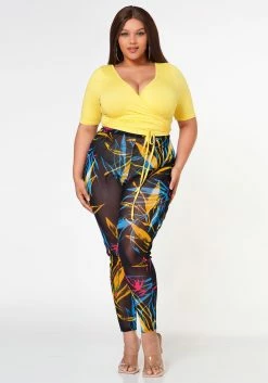 Plus Size Wrap Crop Top & Ruched Leggings Set