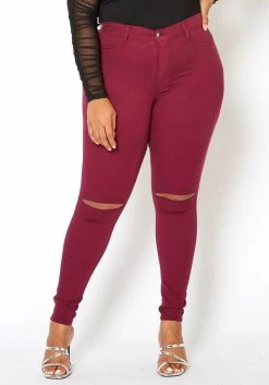 Vibrant Plus Size Classic Knee Rip Skinny Jeans