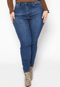 Vibrant Plus Size High Waisted Blue Wash Skinny Denim Jean