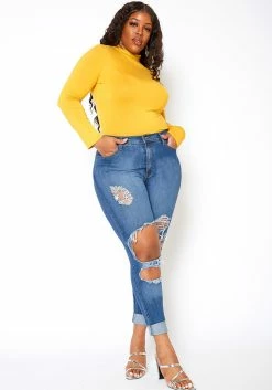 Vibrant Plus Size Knee Destroyed Mid Waist Jean