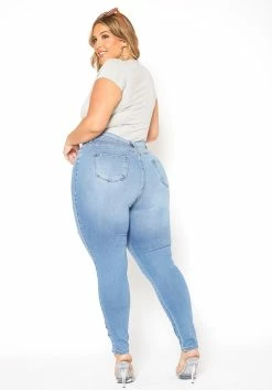 Vibrant Plus Size Light Denim Distressed Skinny Ankle Jeans