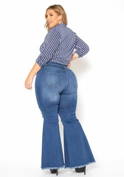 Vibrant Plus Size Knee Distressed Retro Bell Bottom Jean