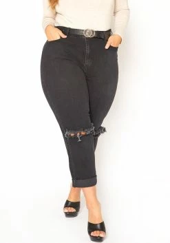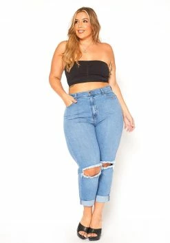 Vibrant Plus Size Ripped Knee High Rise Mom Jean