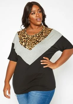 Asoph Plus Size Leopard Chevron Splice Tee Shirt