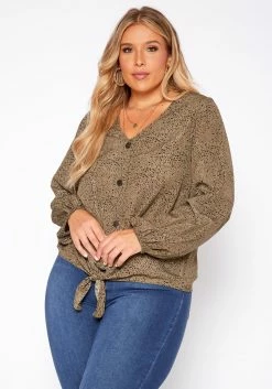 Asoph Plus Size Leopard Print Long Sleeve Top